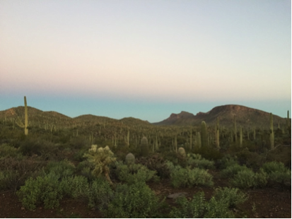 To prepare us for the desert practice, we stood and were invited to draw our attention to different parts of the body, noticing the difference between sensing and feeling. The distinction was challenging for me to get, but it struck me as more about sensing energy vs. feeling something with your normal senses. As we cultivate the ability to sense, we expand our awareness of connection. Those are my words!