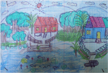 Yes, perspective. Just like you learned in elementary school art. When you first began drawing pictures, probably as a preschooler, Mommy and Daddy and your big sister were always bigger, no matter where they appeared in your picture, because that’s what they were! Then someone taught you about foreground and background, and you learned how to make things at the back of the picture smaller to show that they were farther away. You learned to turn your house at a slight angle on the page so that you could show two sides of it at once. You may or may not have consciously realized that you were learning how to proportion the various bits and pieces in relation to a hypothetical point on the horizon. But your drawings got more orderly, and they began to convey a sense of depth.