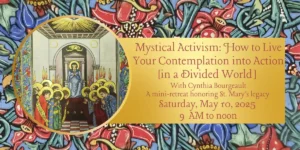Join St Mary’s at Penn and Cynthia Bourgeault for this in-person and live-streamed event on loving God and our neighbor with radical obedience. Come be...